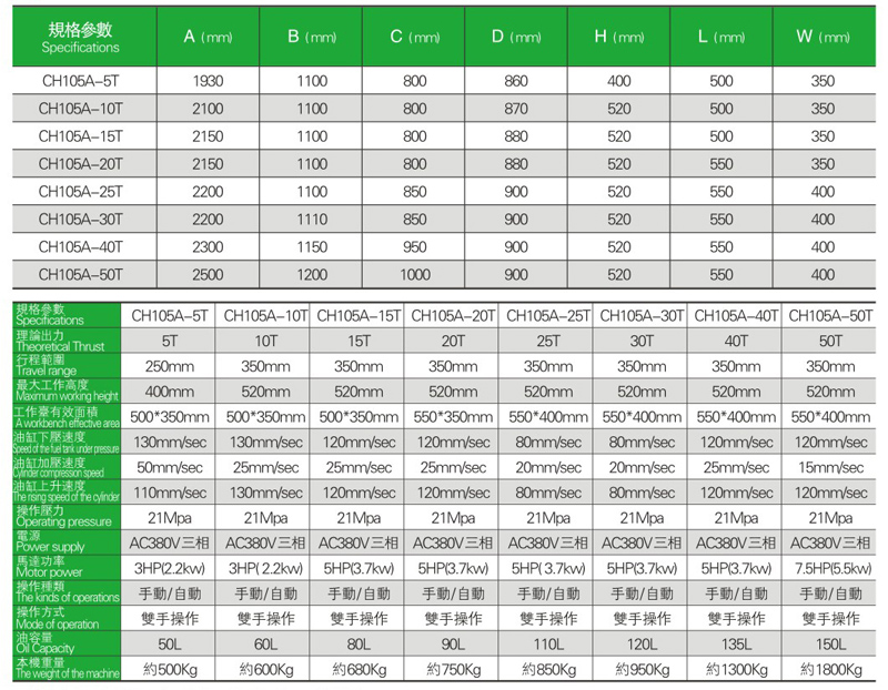 四柱油壓壓床CH105A系列